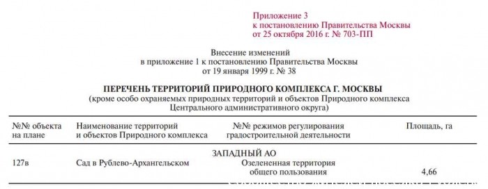 Постановление правительства Москвы об утверждение проекта Рублёво-Архангельское​​ 703-ПП 25.10.16