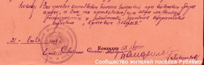 Вывод: За умелое выполнение боевых заданий при нанесении удара врагу, а так же проявление при этом мужества, находчивость и стойкость – достоин награждения орденом «Красное Знамя».