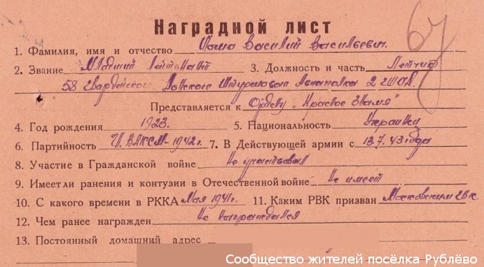 21 июля - через 9 дней после прибытия в действующую армию - Василий Шома представлен к награде: ордену "Красная Звезда".
