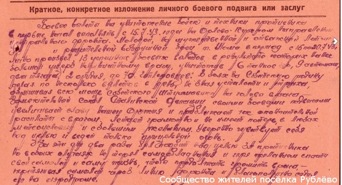 Краткое, конкретное изложение личного боевого подвига или заслуг