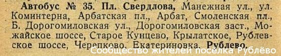 В 1938 году маршрут "Рублёвский" получил № 35.