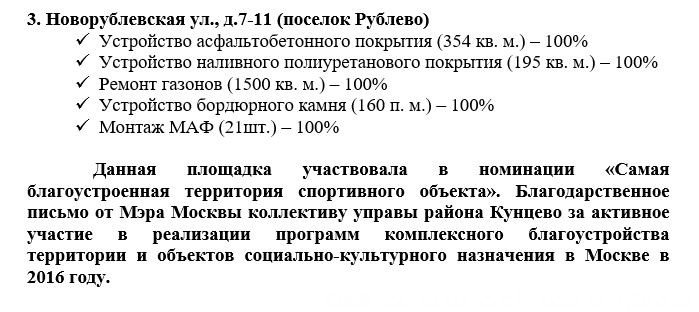 Отчёт главы управы Д.О.Чистякова о результатах деятельности управы района Кунцево города Москвы в 2016 году.