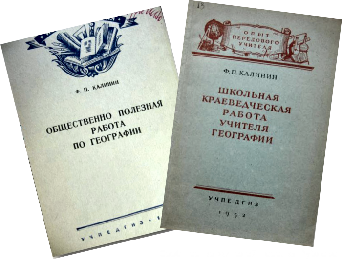 В заключение хотелось бы вспомнить, что Ф.П.Калинин вложил в любимое дело преподавания географии все свои силы, знания и умение. Не только в учебное время, но в часы досуга и во время каникул он был вместе с детьми, руководил их чтением географической литературы, изготовлением наглядных пособий и приборов, совершал с ними увлекательные экскурсии и экспедиции по изучению родного края.