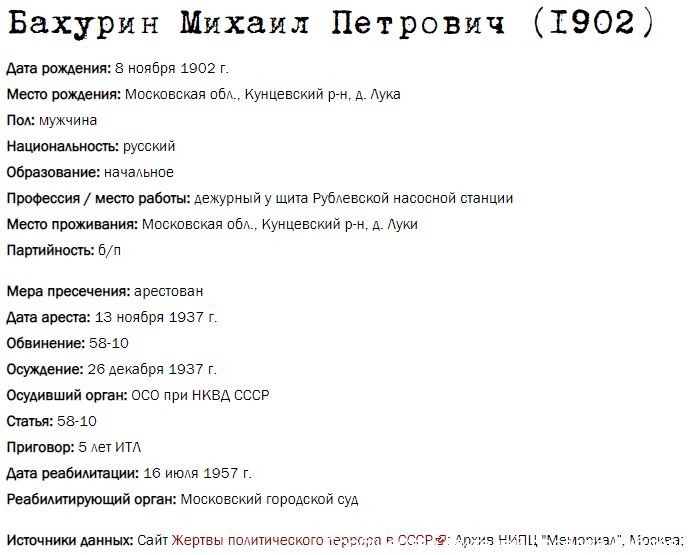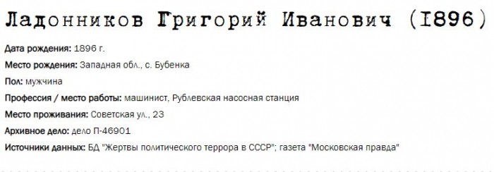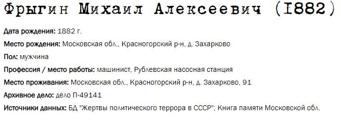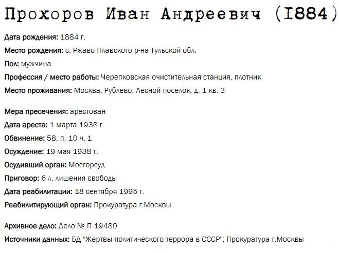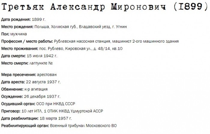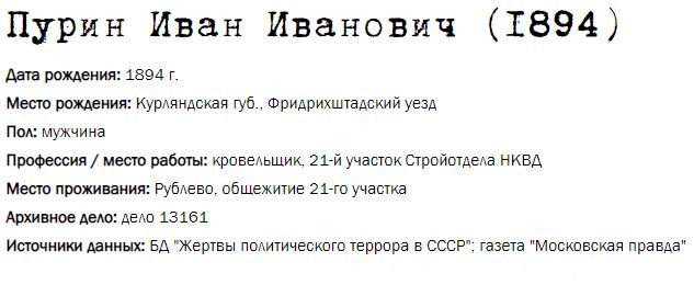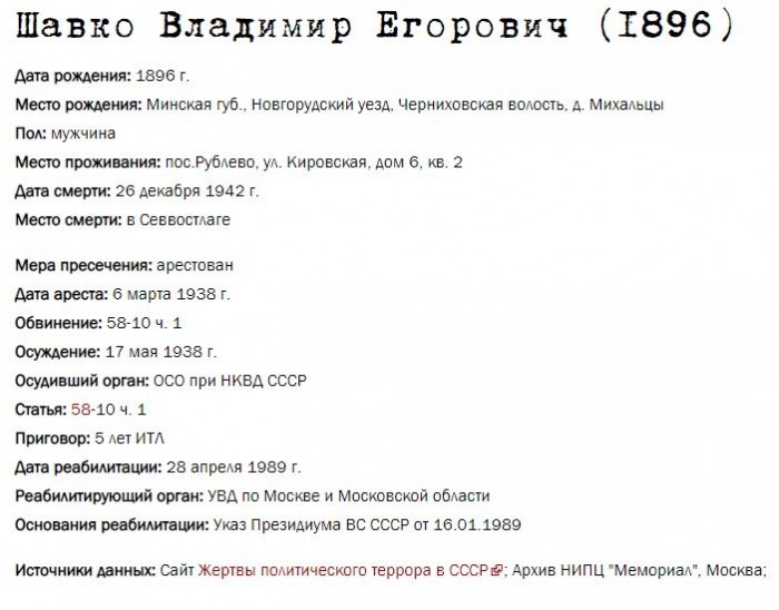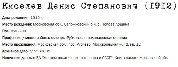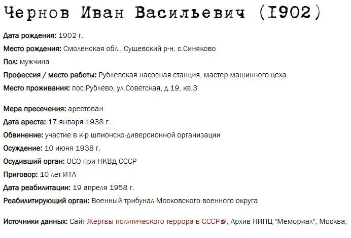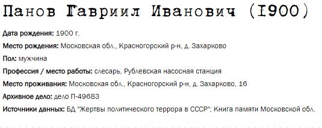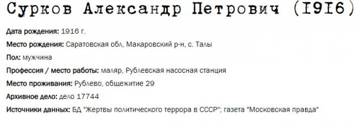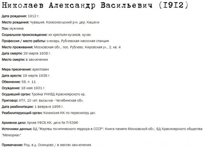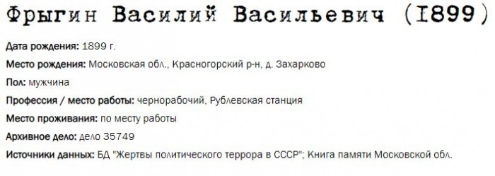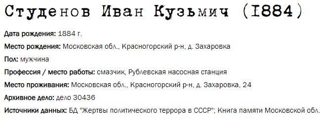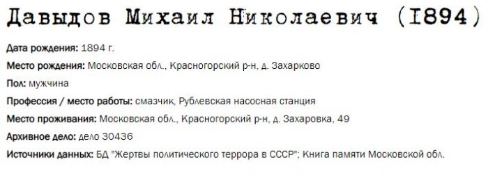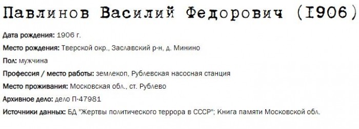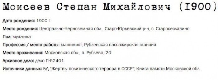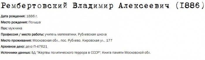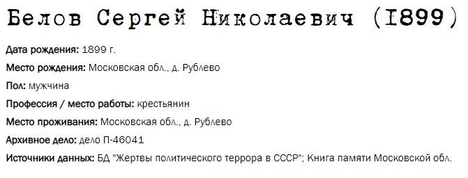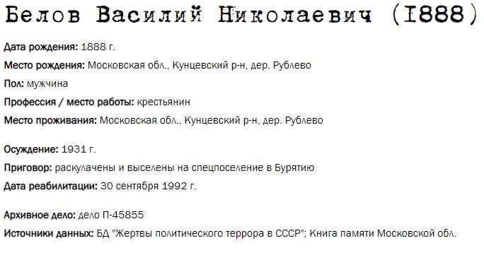 Жители Рублёво - жертвы политических репрессий 1922-1946 гг.