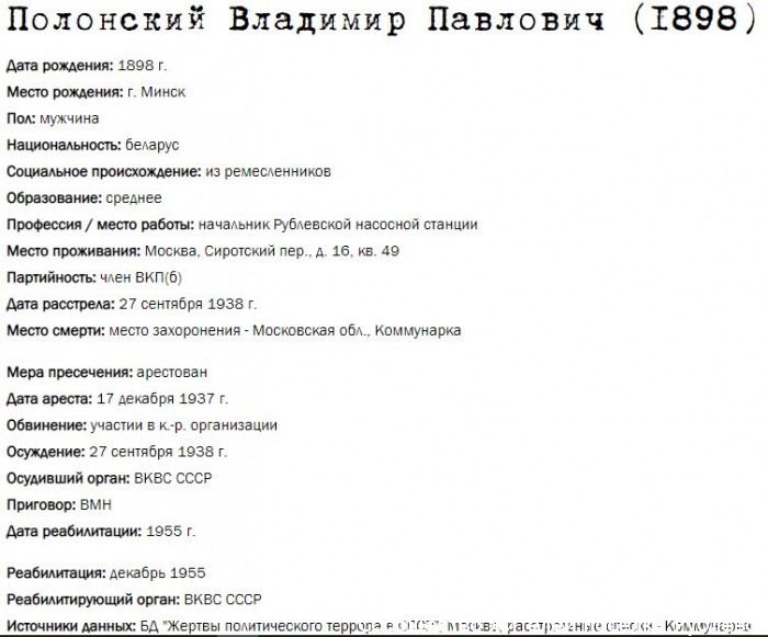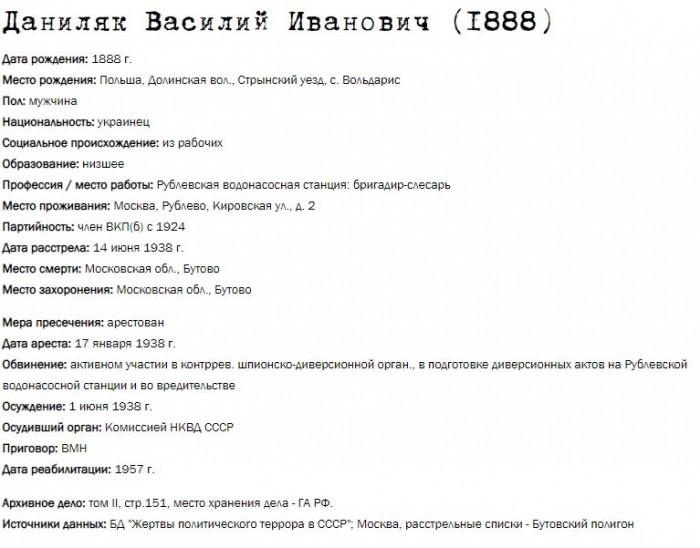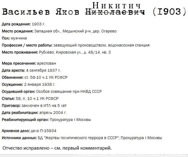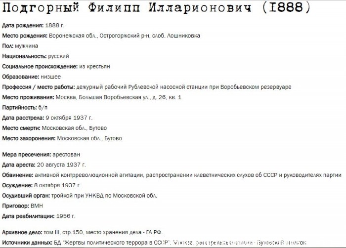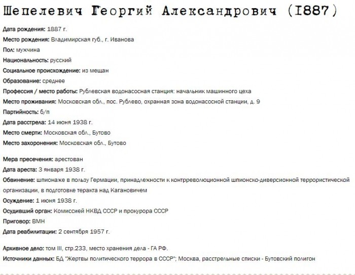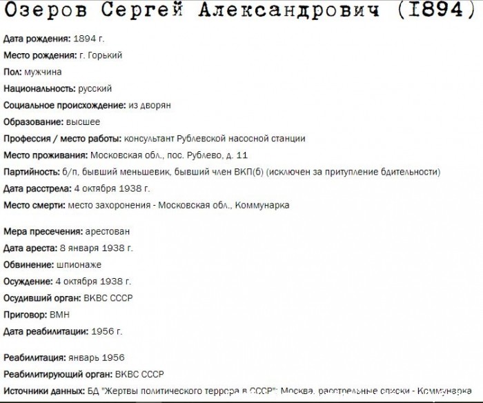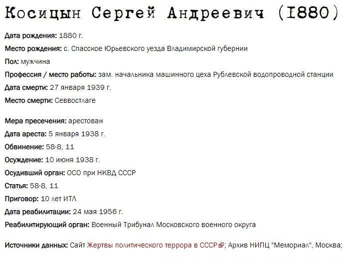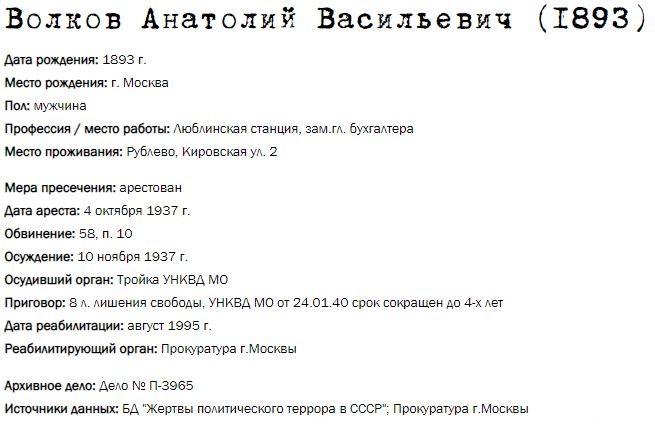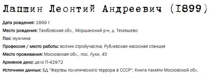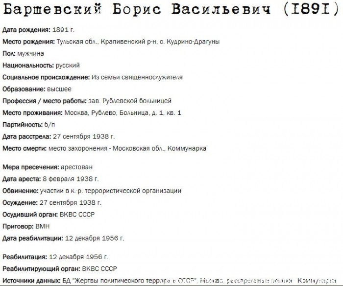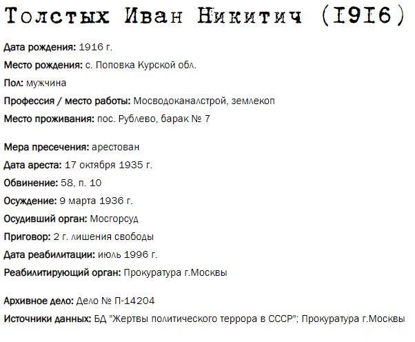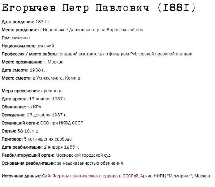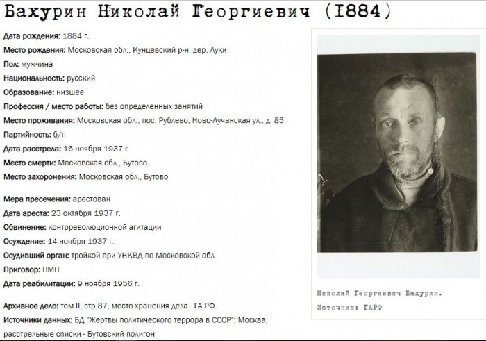 Жители Рублёво - жертвы политических репрессий 1922-1946 гг.