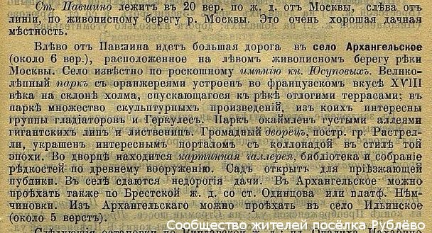 Рублёво, Кунцево, Архангельское в Дачном путеводителе по окрестностям Москвы. 1907 год