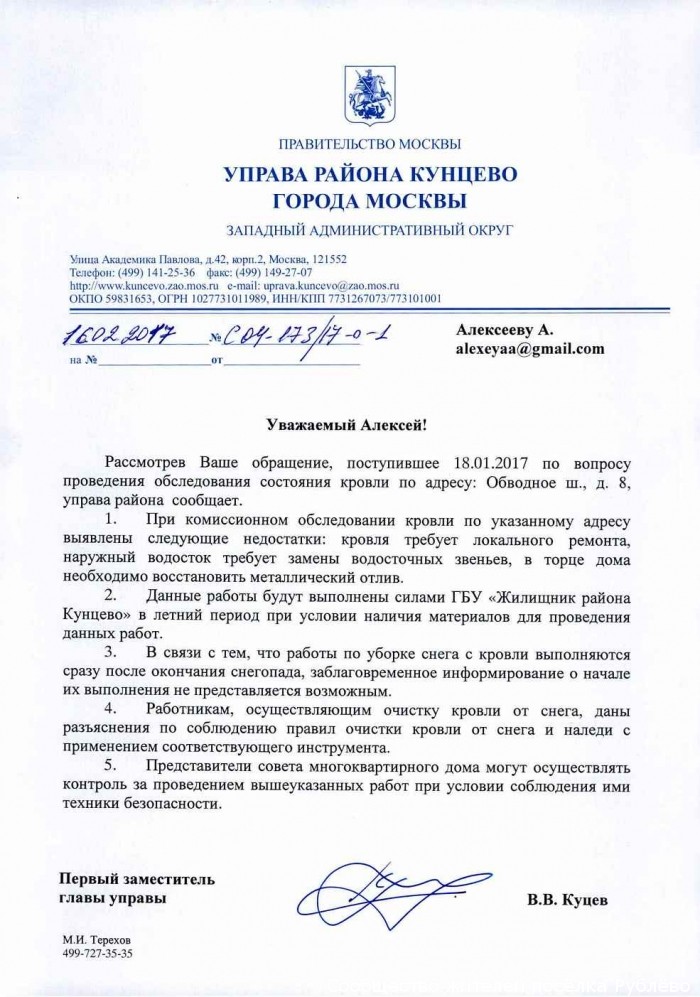 | Ведомство \ организация | Управа Р-на Кунцево |