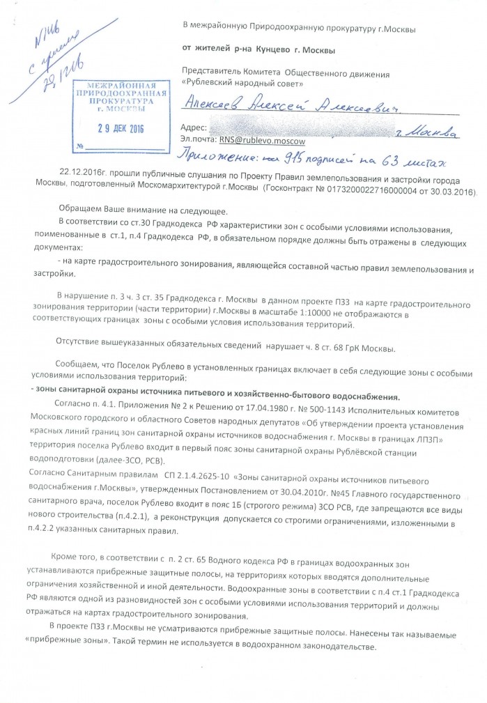 - 10 февраля 2017 получен промежуточный из Департамента природопользования и окружающей среды Москвы: - переслали в МоскомАрхитектуру