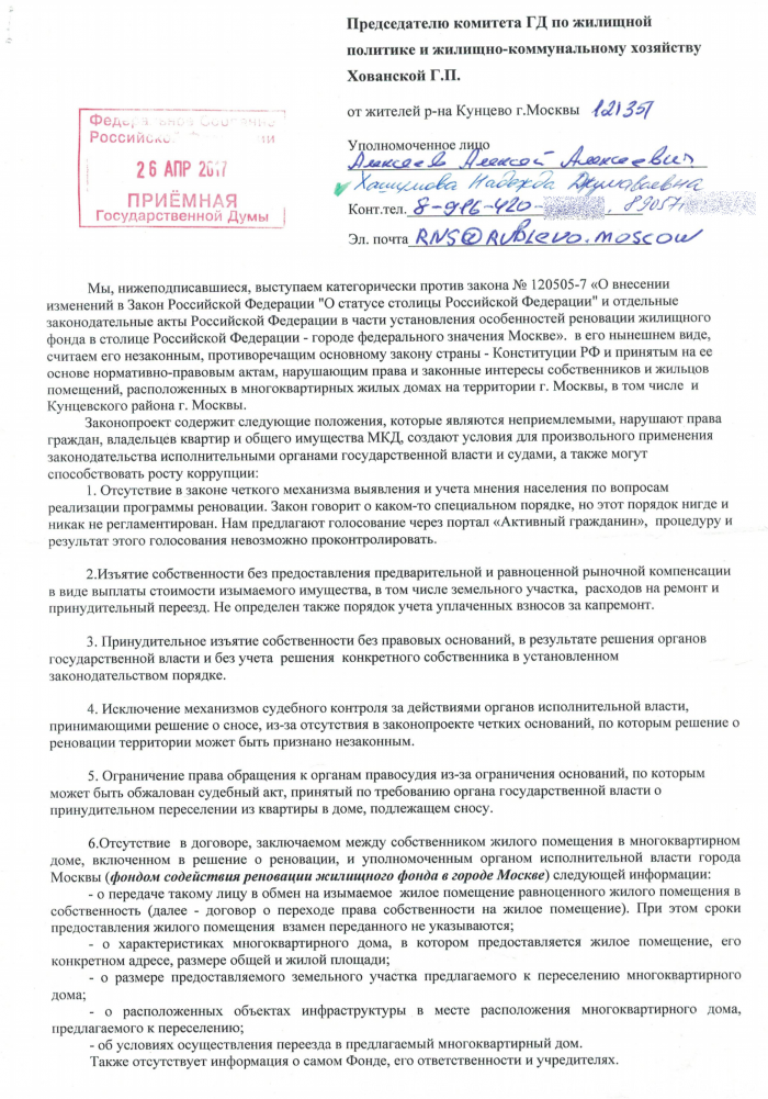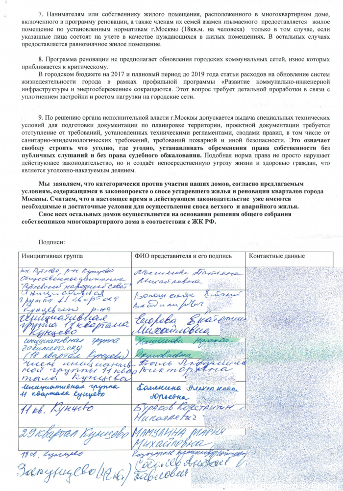 Обращение инициативных групп против нарушения прав граждан законом о "Реновации Москвы"