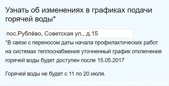 Отключение горячей воды в Рублёво с 15 по 24 мая