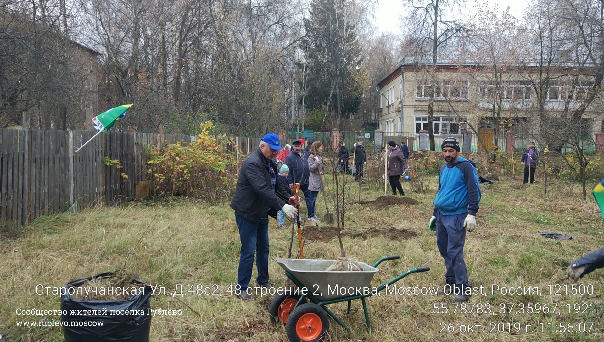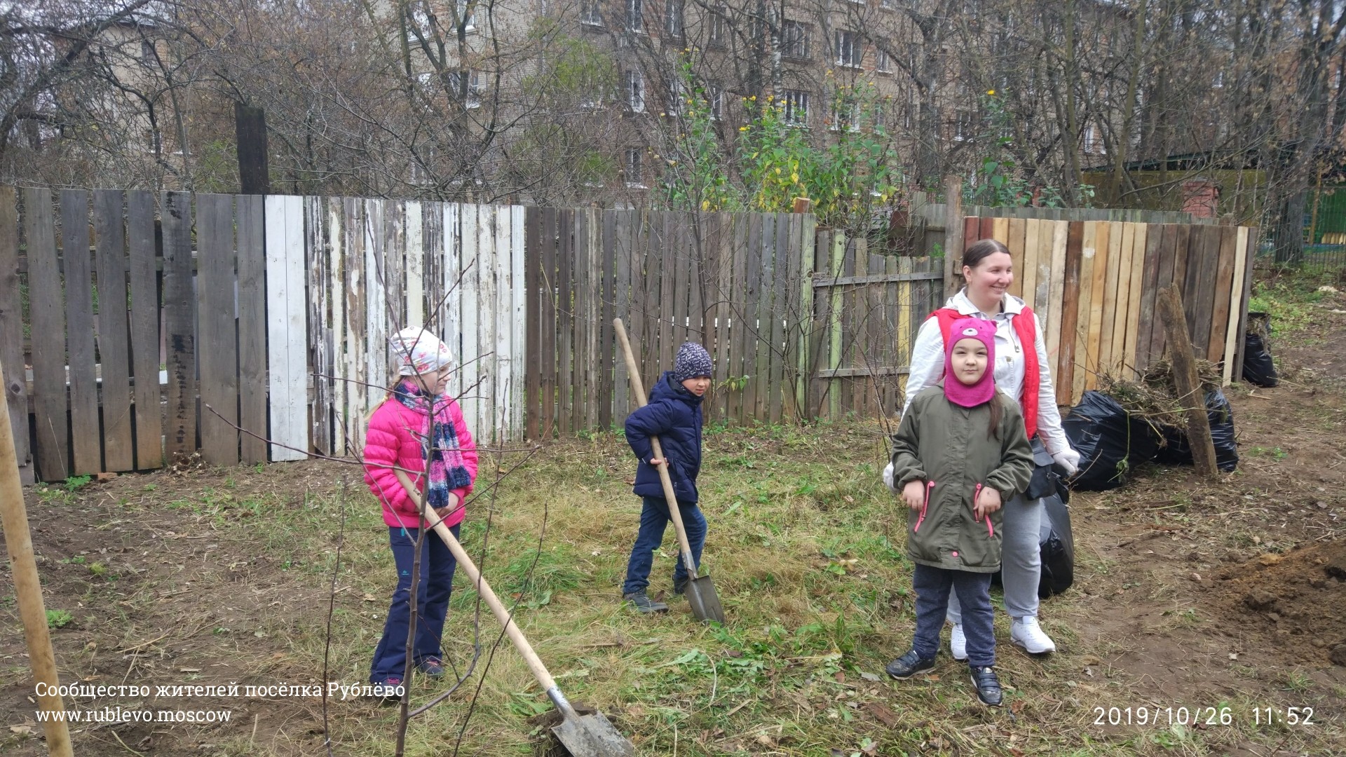 В результате жители посадили целую новую аллею фруктовых деревьев. Взамен заваленного мусором пустыря в Рублёво появляется новое место отдыха для детей и взрослых.