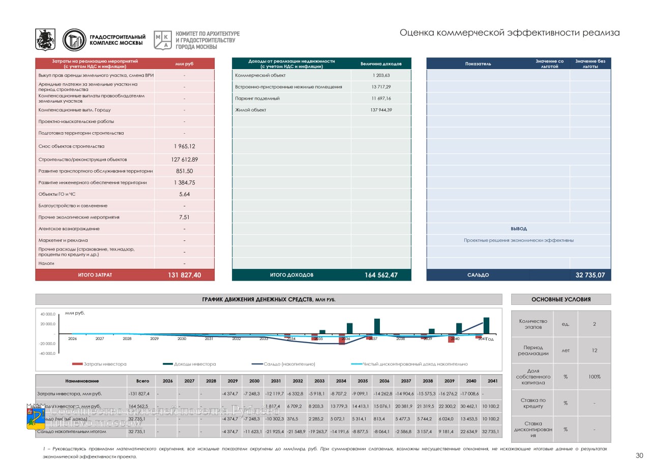 Согласно финансовой модели проекта, прогнозируемое положительное сальдо от реализации недвижимости составляет более 32 миллиардов рублей.
