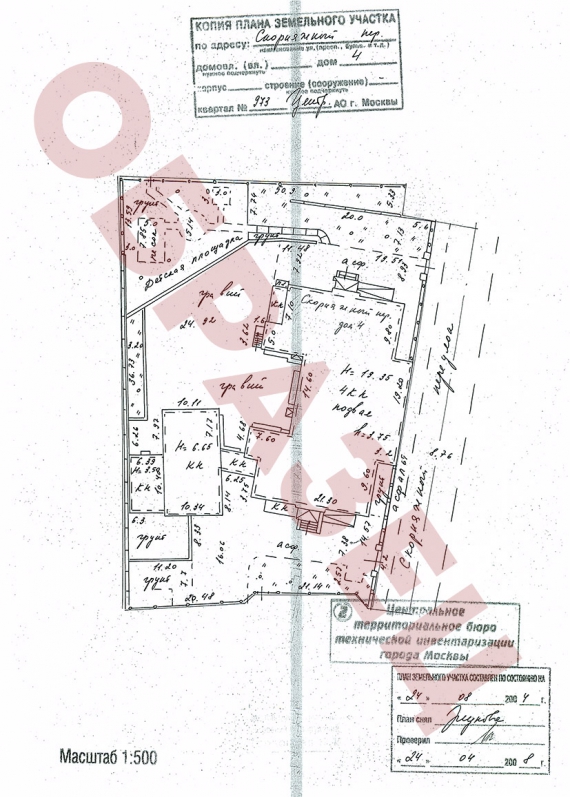 Теперь нужно узнать границы вашего земельного участка многоквартирного дома, которые официально занесены в кадастровую базу данных. Для этого надо прийти с паспортом в Кадастровую палату и заказать там кадастровую выписку на земельный участок вашего дома. Официальное название этого учреждения: ФГБУ «ФКП Росреестра»; находится оно по адресу: 107078, г. Москва, Орликов пер., д.10, стр. 1. Расписание и прочую информацию можно найти ЗДЕСЬ. Можете заказать кадастровую выписку сами, можете попросить знакомого кадастрового инженера. В любом случае, эта процедура не займёт особого труда. Когда вы получите эту выписку, сравните её данные с планом в паспорте БТИ на домовладение, сформированном на момент введения технического учёта. Если границы в них совпадают, значит всё в порядке, главное теперь ничего не подписывать — никаких согласий на раздел, актов согласования границ и прочих бумажек. Если в кадастровой выписке земельный участок урезан, либо его границы вообще отсутствуют, значит уже произведена афёра.