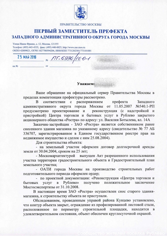 Ответы за май по стройке магазина на Василия Ботылёва, 14