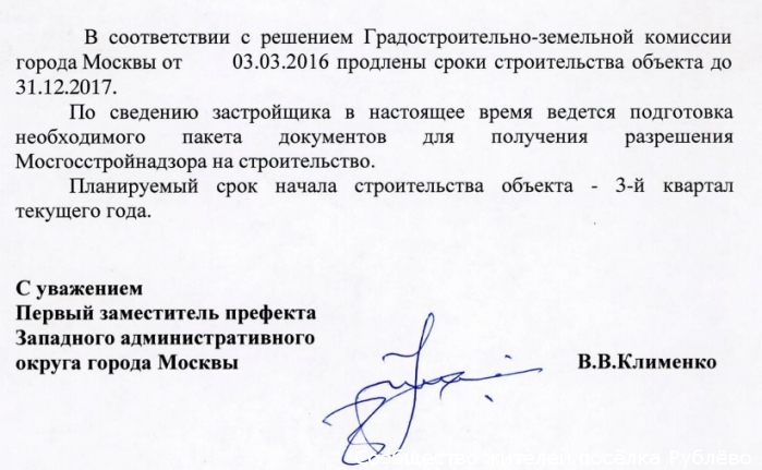 2. На текущий момент нет разрешения от МосГосСтройНадзора.