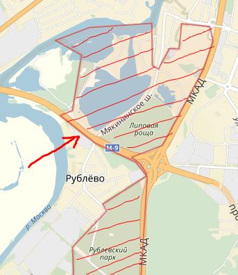 Липовая роща, расположенная рядом с пляжем «Рублевский» прямо на съезде с МКАДа.