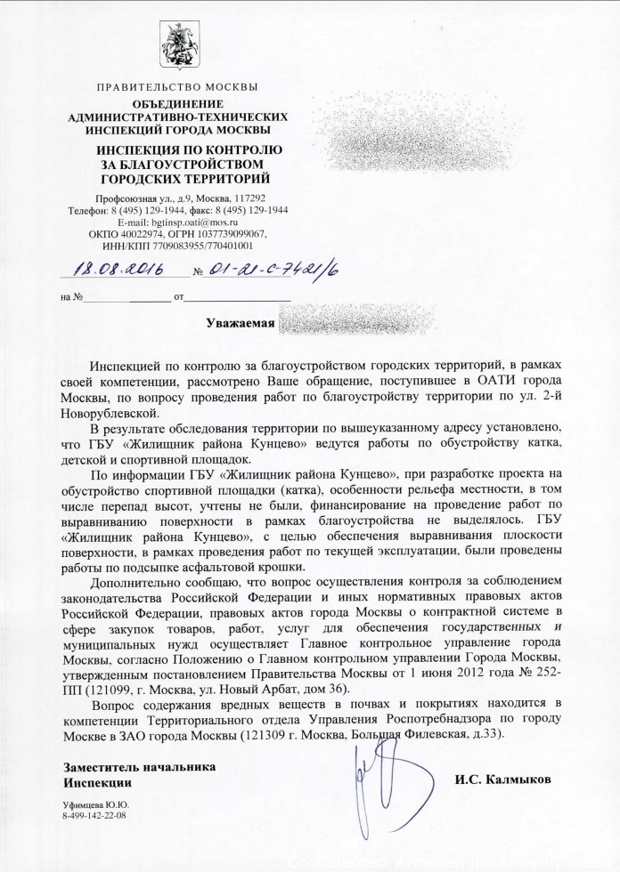 ОАТИ: асфальтовая крошка и финансирование спортплощадки на ул.Новорублевской