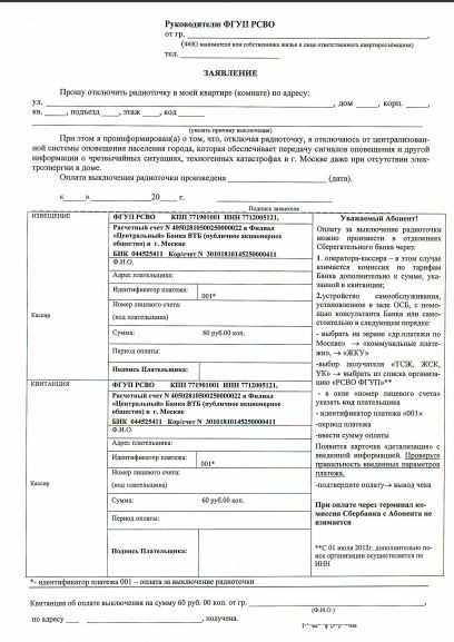 Вариант отключения радиоточки через Многофункциональный центр (если начисление платы производится через ЕПД)