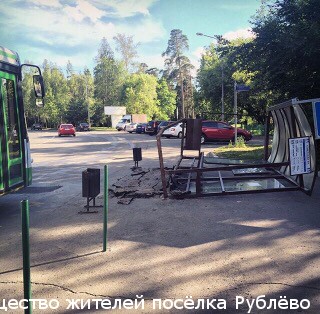 В первый раз остановка была повреждена в результате ДТП летом 2015 года. В ноябре 2015 года остановку установили после нескольких обращений через портал «Наш Город». Остановка была не новая, имела дефекты и была не очень хорошо закреплена. Также были жалобы на отсутствие у остановки необходимой платформы безопасности в соответствии с требованиями ГОСТа. Место ожидания пассажиров должно быть приподнято относительно проезжей части и ограждено бордюром (для понимания: так сделано на начальной остановке «Рублево»). Это затрудняет заезд автотранспорта на территорию остановки (незаконная парковка или случайный наезд на пассажиров), а также обеспечивает удобство посадки для лиц старшего поколения, которым тяжело подниматься на первую ступеньку. Об этом неоднократно сообщалось в Департамент транспорта, который присылал отписки и не хотел реагировать на жалобы.