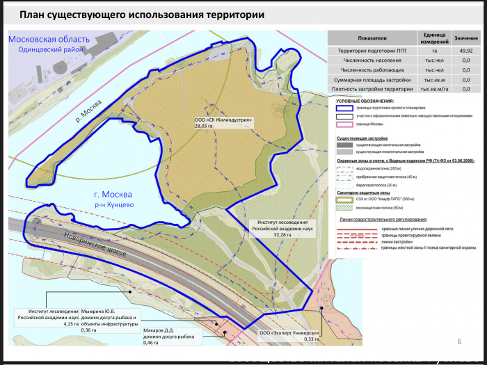 Одна из причин, по которой стройку никак не могут начать — находящаяся в двух километрах Рублевская водопроводная станция. Застраиваемая территория находится во втором поясе зоны санитарной охраны и прибрежная вода, так или иначе, попадает на станцию, а затем — в квартиры москвичей.