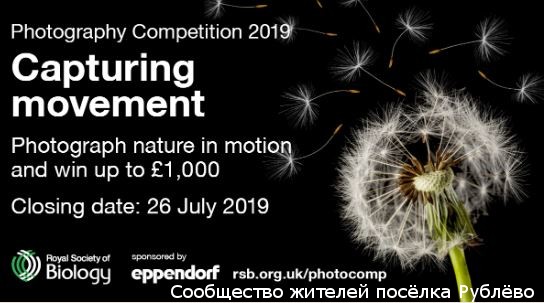 Королевское биологическое общество (Великобритания) приглашает всех желающих, кроме профессиональных фотографов, принять участие в конкурсе фотографий на тему движения в природе. "Жизнь на Земле постоянно меняется, и мы приглашаем вас сфотографировать природу в движении.Возможно, вы захотите изучить передвижение и миграцию животных или рост и колонизацию растений и грибов. На вашей фотографии может быть изображен полёт, охота, игра и плавание."