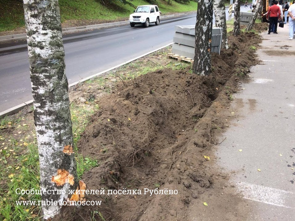 Напротив дома 5 по Обводному шоссе при ремонте дорог пострадало 10 берёз - корневая система, что нарушает приствольное пространство, и у 4 повержена кора. Это очень сильно отразилось на берёзах, у которых риск падения из-за этого увеличился.