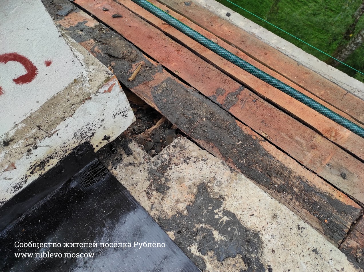 2. Не выполнены работы по замене сгнивших досок и лаг на отвесах крыши. Подрядная организация собиралась просто закрыть их рулонной гидроизоляцией, что сделало бы невозможным проконтролировать качество работ.